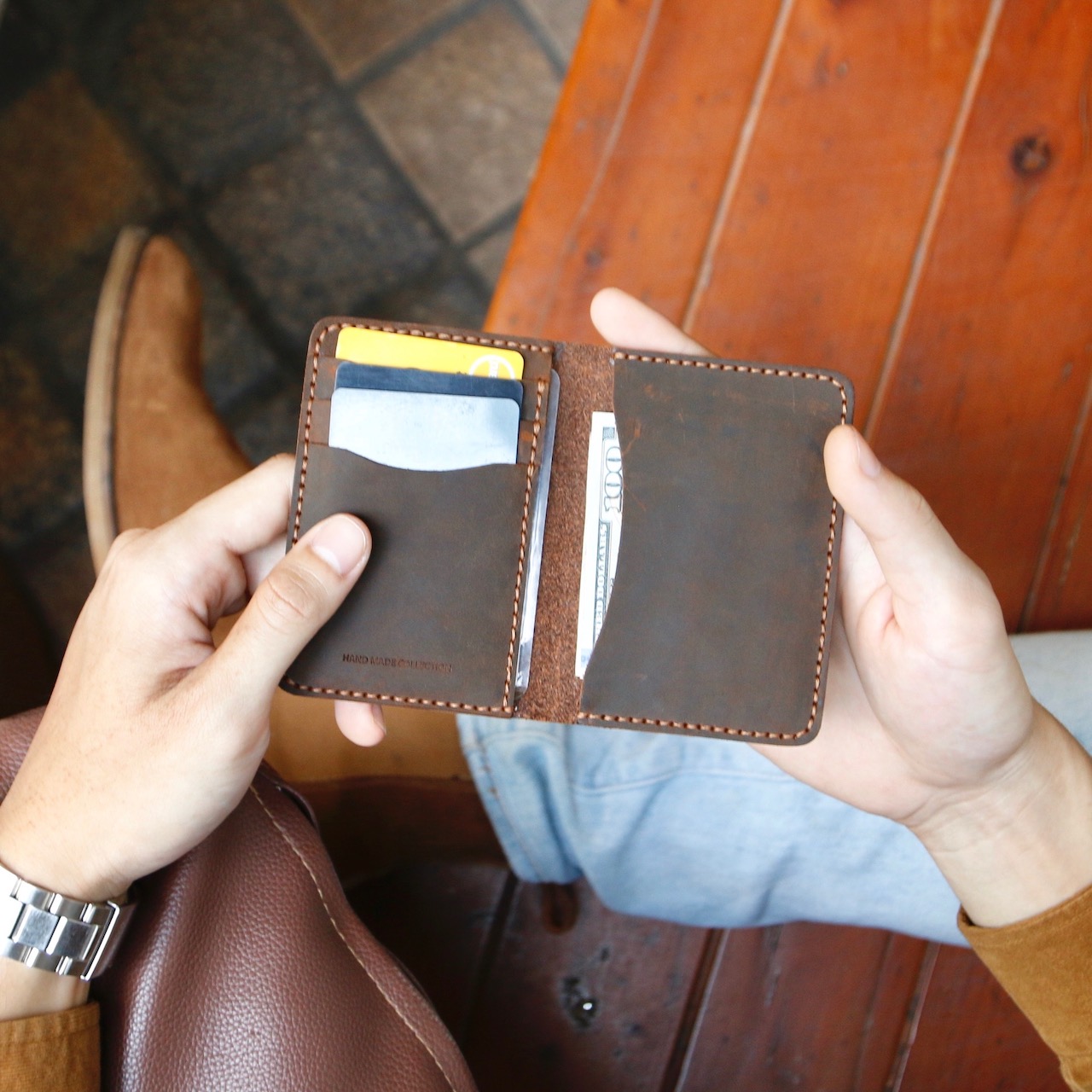 Ví Da Nam Cầm Tay Da Bò Thật Khâu Thủ Công XCT116